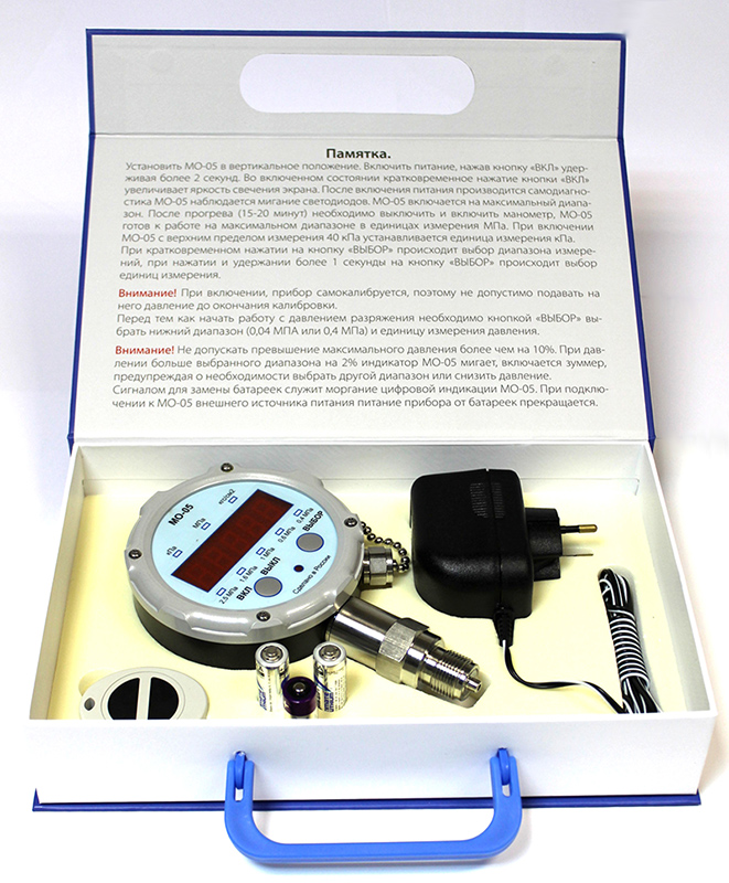 Манометры МО-05 с цифровым табло от производителя ЗАО «РОСМА» предназначены для точного измерения избыточного давления жидкостей, газов, разряжения газов. Прибор выпускается в стальном корпусе диаметром 108 мм, радиальном исполнении (штуцер снизу), с манометрической резьбой, степенью защиты IP65 и выбором следующих классов точности: 0,025 0,05 0,1 0,15 0,25 0,4. По сравнению с обычными механическими манометрами один цифровой имеет возможность выбора нескольких единиц измерения и до 6-ти выделенных поддиапазонов давления. Цифровые манометры применяются в сферах гос. регулирования обеспечения единства измерений (передача размера единиц давления при поверке, калибровке и испытаниях средств измерения давления).