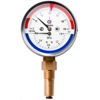 Термоманометры ТМТБ от отечественного производителя ЗАО «РОСМА» — это прибор, объединяющий в себе манометр и термометр, который служит для измерения избыточного давления и температуры неагрессивных жидких сред. Прибор имеет две шкалы (одна для отсчета давления, другая для температуры) и две указательные стрелки. Прибор поставляется вместе с клапаном, который предназначен для подключения и демонтажа прибора. Область применения: в системах отопления, водоснабжении (например, бойлеры для воды, паровые котлы). Термоманометры представлены в ассортименте РОСМА с двумя диаметрами корпуса 80 и 100 мм (ТМТБ-3 и ТМТБ-4), в радиальном и осевом исполнении, и с разной длиной погружной части (L) в зависимости от температуры измеримой среды: 46/ 64/ 100 мм.