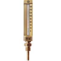 Термометры ТТ-В от отечественного производителя ЗАО «РОСМА» относятся к техническим жидкостным термометрам, служат для измерения температуры неагрессивных жидких и газообразных сред с максимальной рабочей температурой 200°C в условиях с большим разбросом динамических нагрузок. Область их применения в водо- и теплоснабжении, а также судостроении. Термометр жидкостной представляет собой прибор со стеклянной капиллярной трубкой, заполненным термометрической жидкостью резервуаром, защитным корпусом из анодированного алюминия и защитной гильзой из латуни или нержавеющей стали. В ассортименте РОСМА представлены термометры ТТ-В в разных исполнениях: высота корпуса 110/ 150/ 200 мм; присоединение прямое или угловое; длина рабочей части (погружной) 30/ 40/ 50/ 64/ 100/ 150 мм.